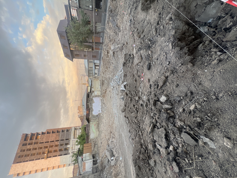 - "This image captures a large, active urban demolition or excavation site in Yerevan, Armenia, specifically identified by the prominent unfinished building in the background as being in the vicinity of **Isahakyan Street, near the Cascade complex**" by FM-ANxO02, licensed under CC BY 4.0