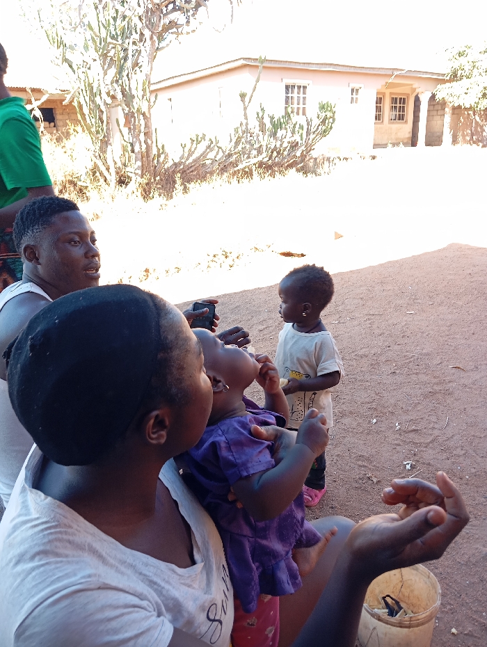 The image depicts an outdoor scene under strong natural illumination in Zawan, Nigeria