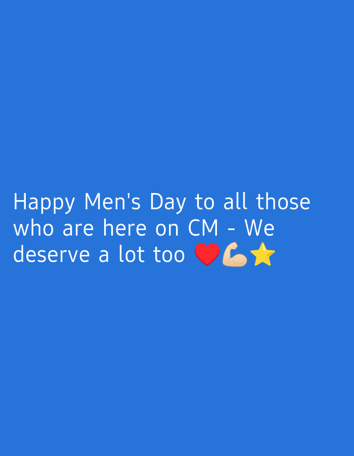 The image features a simple blue background with white text that reads, "Happy Men's Day to all those who are here on CM - We deserve a lot too