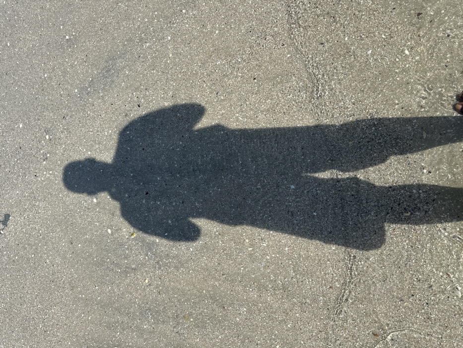 - "A full-body shadow of an individual, wearing a short-sleeved top and knee-length shorts, is cast onto a granular, light-colored sandy surface at Cenang Beach, Malaysia" by FM-Mlchq1, licensed under CC BY 4.0