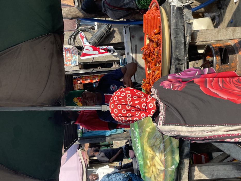 - "The image depicts an outdoor street food stall operating under a large, two-toned green and beige umbrella within a bustling market environment in Lagos, Nigeria" by FM-pK89w1, licensed under CC BY 4.0