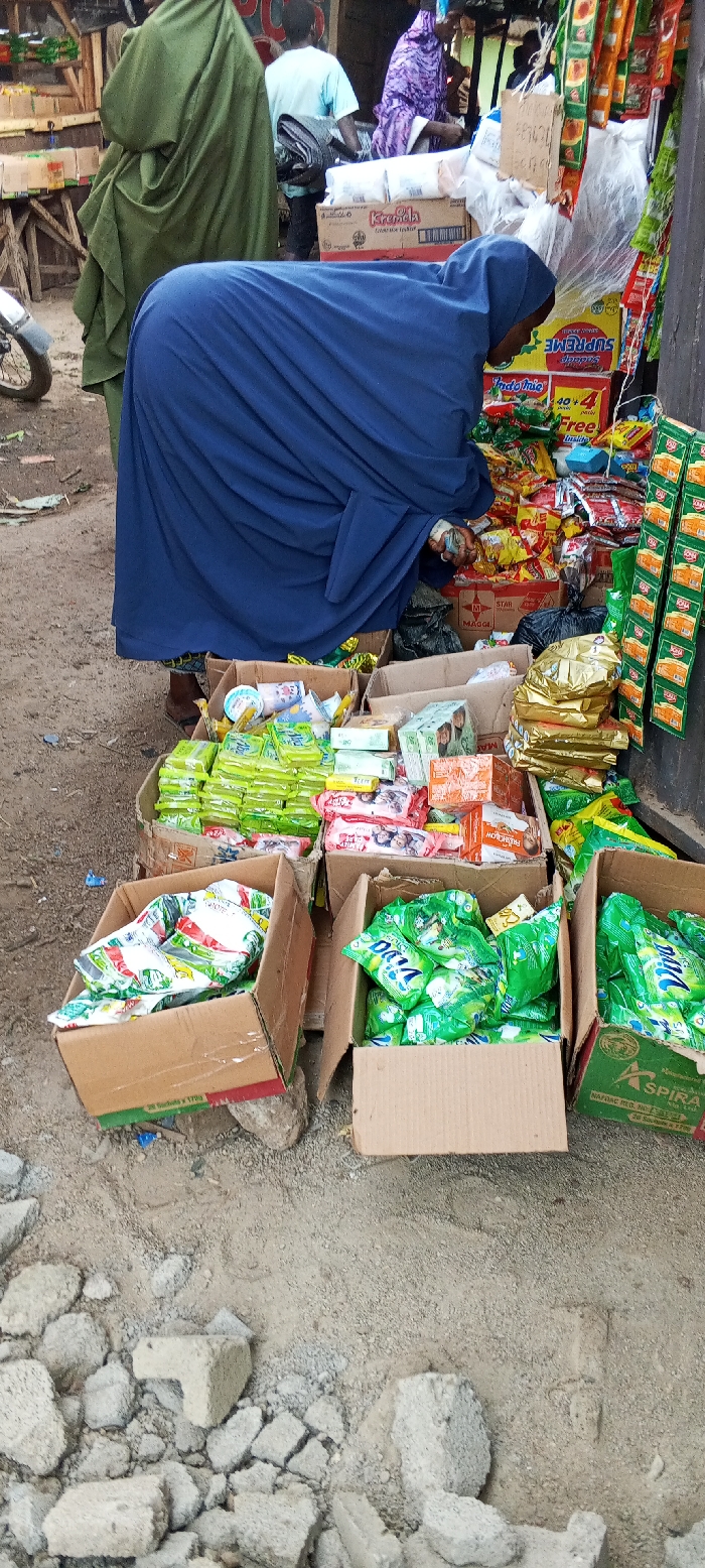 This image depicts an outdoor market stall scene in Nassarawa, Nigeria