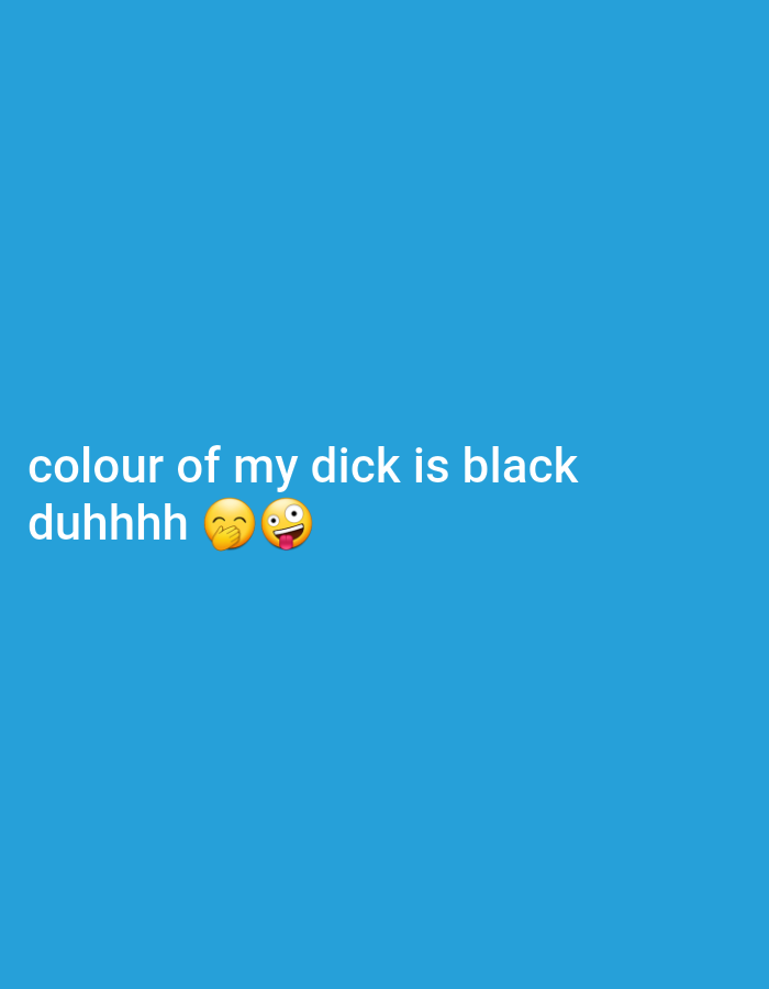 The image displays a digital graphic with a uniform, solid blue background. White text is centrally positioned, reading "colour of my dick is black duhhhh". Immediately to the right of the word "duhhhh" are two yellow emojis: one depicts a laughing face with tears of joy, and the other a face with wide eyes and a tongue extended. No individuals, physical objects, actions, or environmental features are depicted. The image contains no visual information that indicates a specific geographical location, nor any connection to the city of Paris, France.