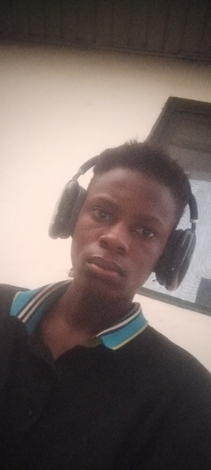A young man poses in a selfie. He is wearing headphones and a black polo shirt with a green and white collar. His hair is short and dark. He looks directly at the camera with a slightly serious expression. The background is a blurry off-white wall and a window. The lighting is soft and diffused, highlighting his face and features.
