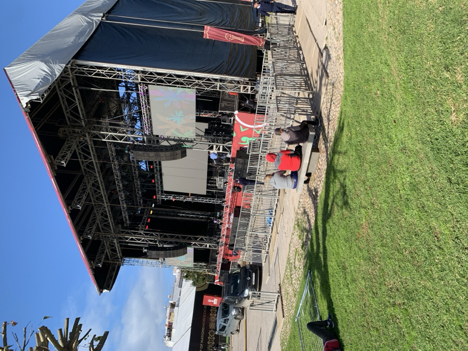 n outdoor event setup under a clear blue sky in Salé, Morocco