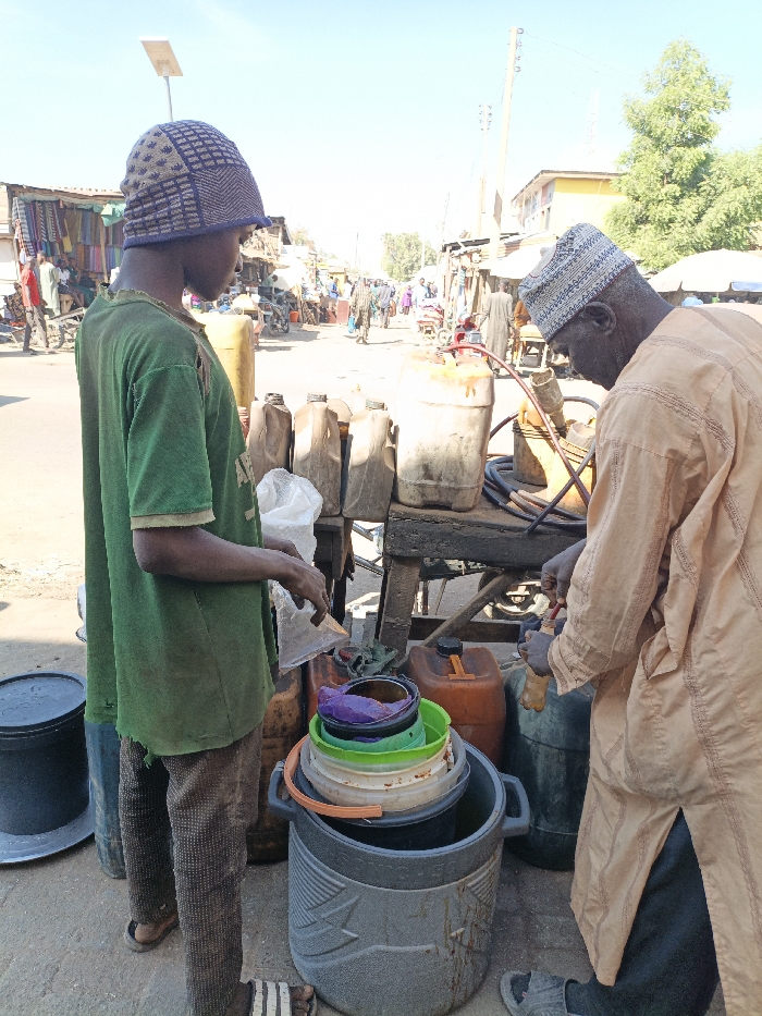 - "In Gama, Nigeria, a daylight street scene depicts an informal fuel vending operation" by FM-Bh3W72, licensed under CC BY 4.0