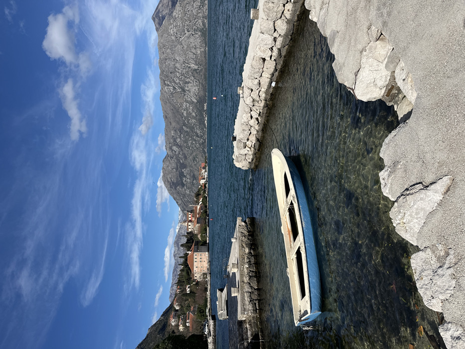 - "The scene depicts a coastal view in Prčanj, Montenegro, under a bright blue sky with scattered white clouds" by FM-A8Ieo2, licensed under CC BY 4.0