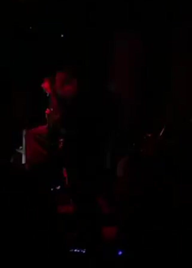 A band performs in a dimly lit venue with red lighting