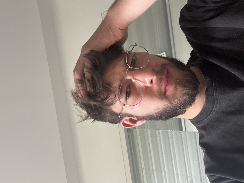 - "An adult male with light skin, dark wavy hair, a beard, and wire-rimmed glasses is depicted from the chest up, positioned centrally in the frame" by FM-hSlL72, licensed under CC BY 4.0