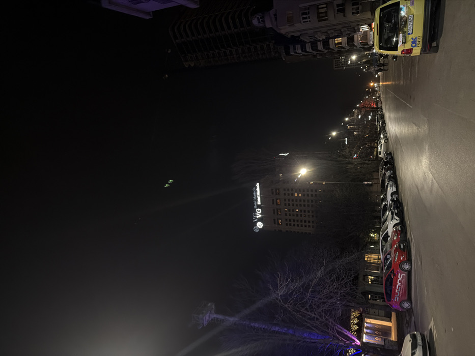 - "The image presents a wide-angle, low-light street view at night in Sofia, Bulgaria, specifically looking towards the Hotel Marinela" by FM-U0N8H2, licensed under CC BY 4.0