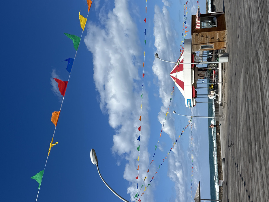 - "The image captures a daytime scene on a wooden boardwalk promenade in Tel-Aviv, Israel, under a clear blue sky with scattered white cumulus clouds" by FM-jqiIm2, licensed under CC BY 4.0