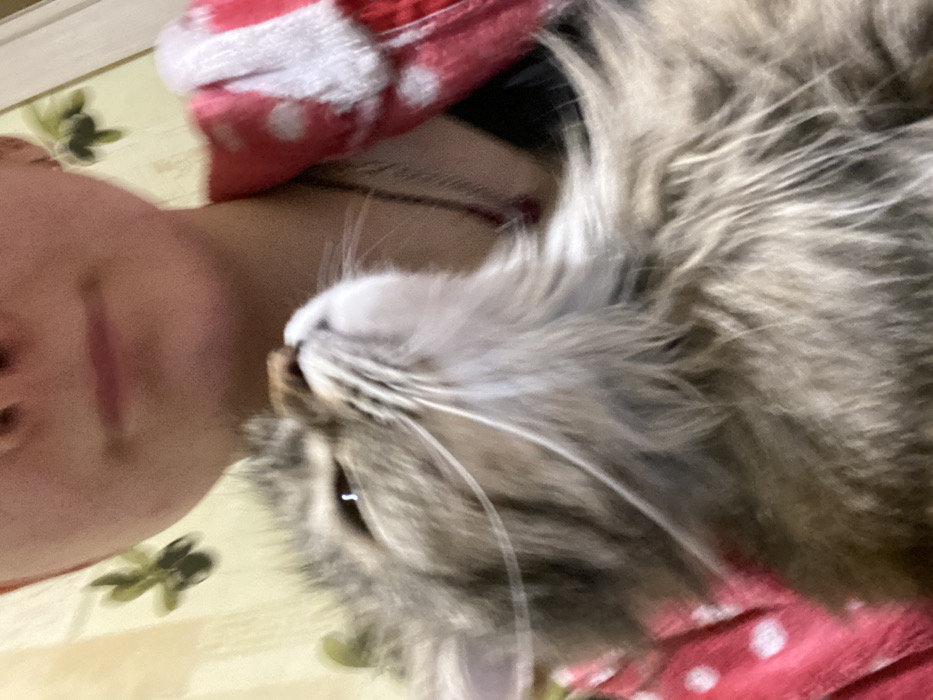 An indoor scene in Saratov, Russia, depicts a human and a domestic cat in a close-up composition
