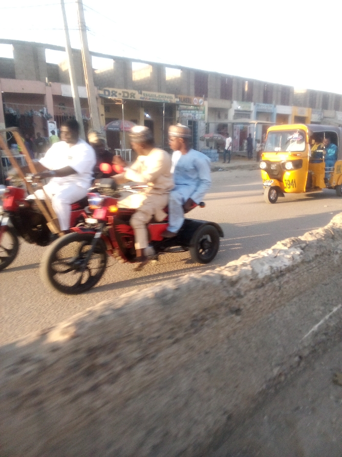 - "Three men ride on motorized three-wheeled vehicles on a road" by FM-n9KFH2, licensed under CC BY 4.0