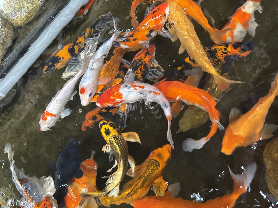 - "The image displays a high-angle view of numerous koi fish densely populating a dark, shallow body of water, likely a pond or large tank, located in Đà Nẵng, Vietnam" by FM-Zr45H3, licensed under CC BY 4.0