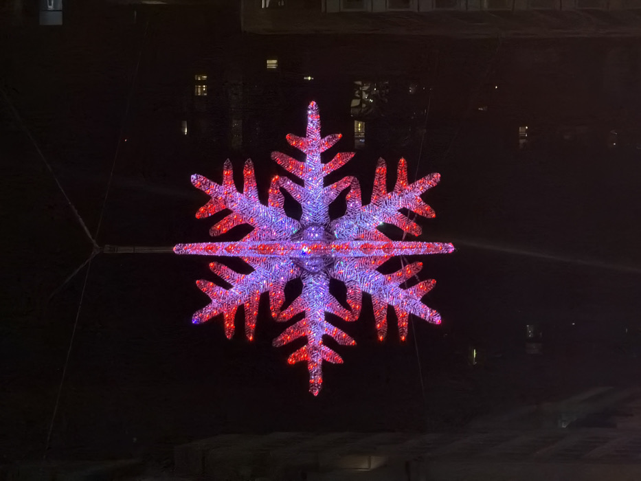 - "A large snowflake-shaped decoration glows in the dark" by FM-AJf9d2, licensed under CC BY 4.0