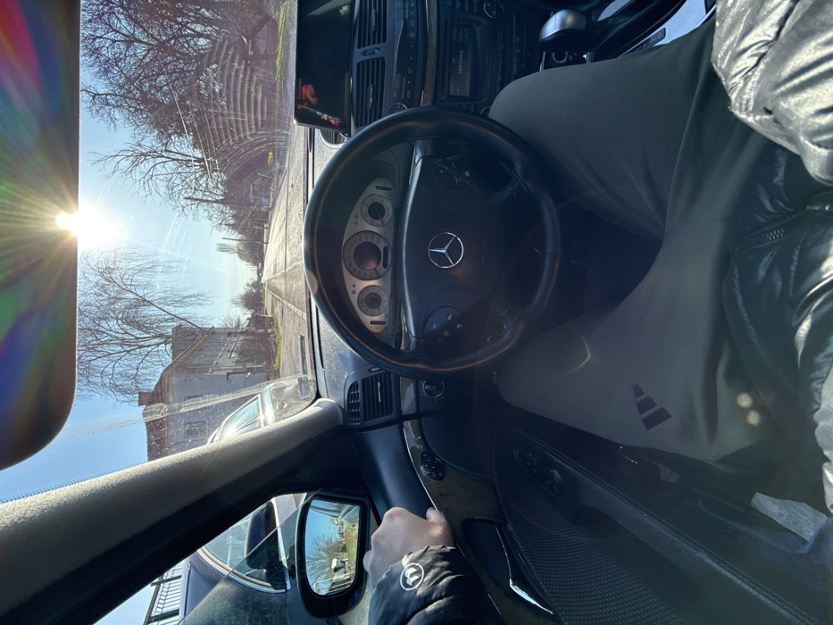 - "The image displays a first-person perspective from the driver's seat of a Mercedes-Benz vehicle, looking forward onto a street in Sarnevo, Bulgaria, under direct sunlight" by FM-en3To2, licensed under CC BY 4.0