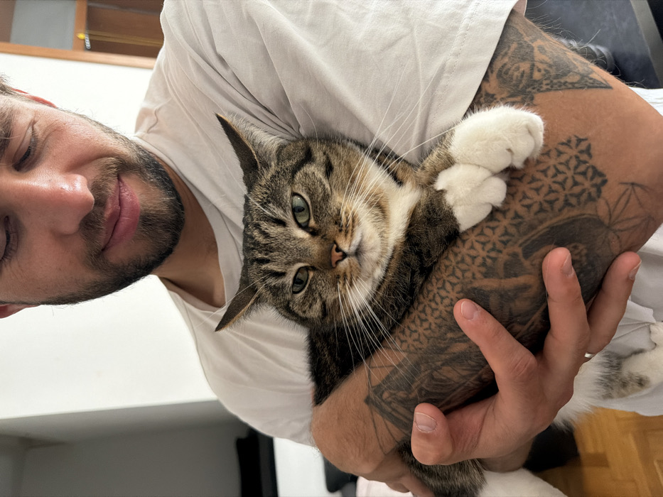 - "An indoor scene in Belgrade, Serbia, depicts a male individual holding a domestic cat" by FM-s9xhH3, licensed under CC BY 4.0