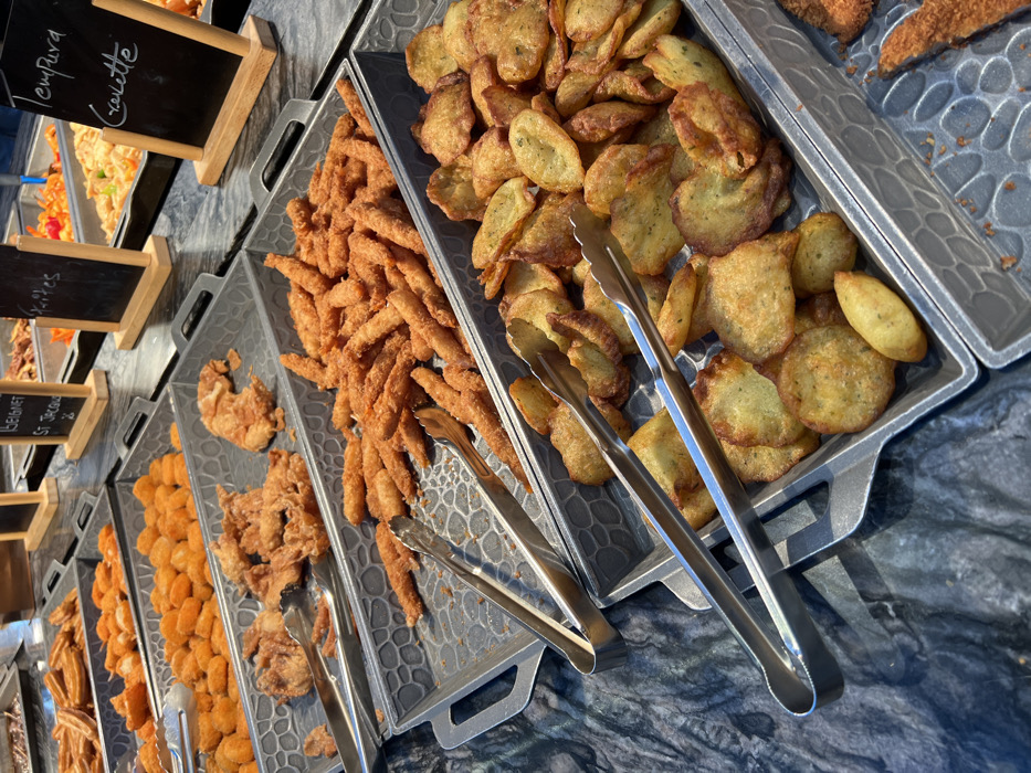 - "The image displays a brightly lit section of a self-service buffet line located in a food establishment in Mondeville, France" by FM-RPGCC2, licensed under CC BY 4.0
