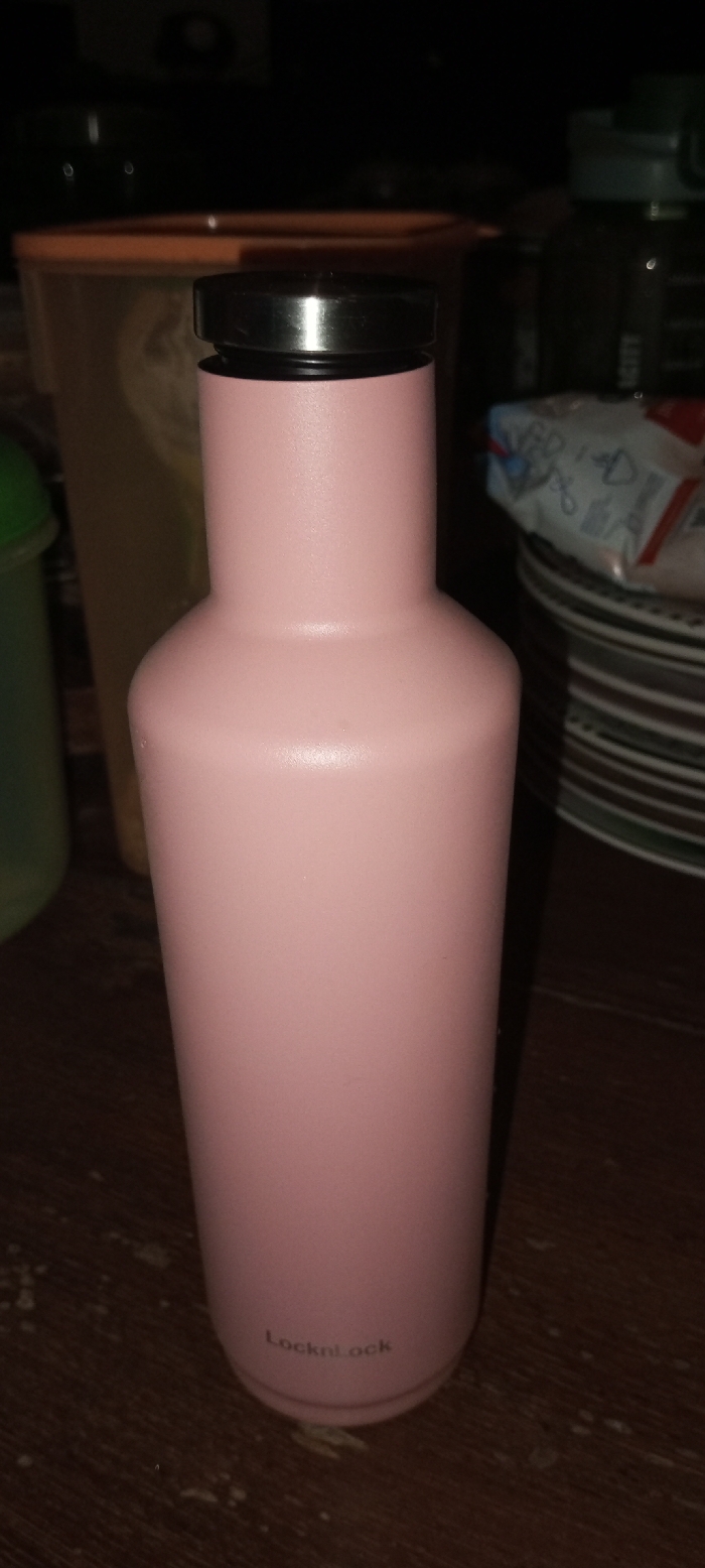 - "A pink LocknLock water bottle stands on a dark, textured surface" by FM-pkayI3, licensed under CC BY 4.0