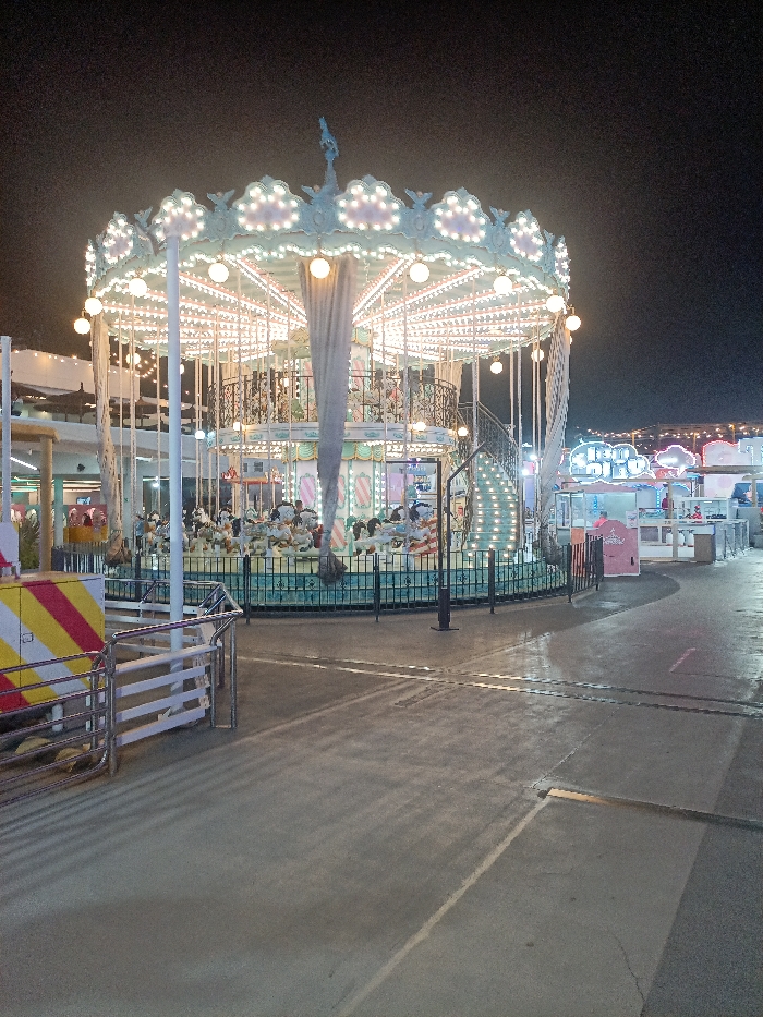 - "A brightly lit carousel stands at the center of an outdoor amusement park at night" by FM-63vGE2, licensed under CC BY 4.0