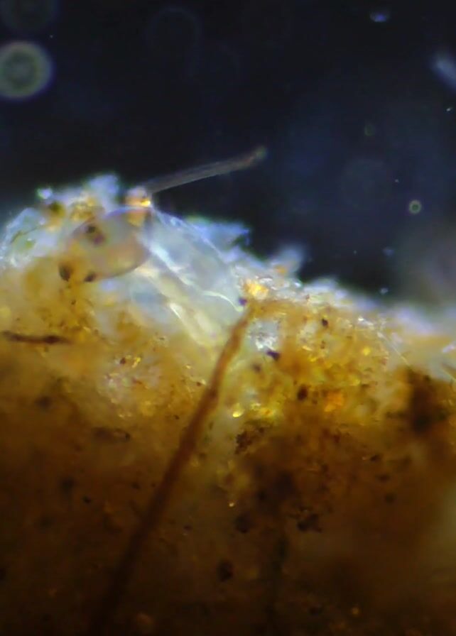 - "microscopic view of what appears to be a transparent, aquatic organism attached to a surface" by FM-X8GB22, licensed under CC BY 4.0