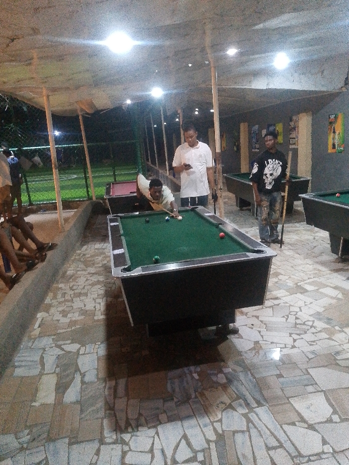 - "Under a brightly lit, makeshift covered patio, three individuals engage in a pool game" by FM-kLrsY2, licensed under CC BY 4.0