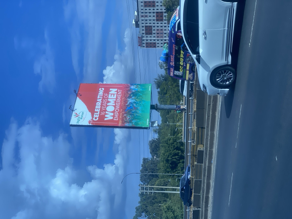 The image captures a billboard celebrating "16 Years of Women Empowerment" by "Joyful Women"