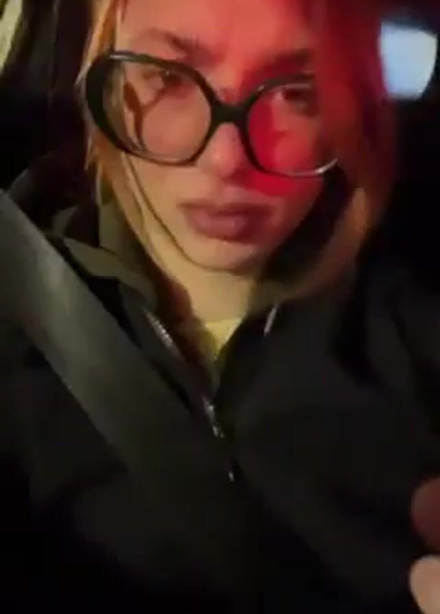 A person with light hair, wearing glasses and a black jacket, is seated in what appears to be a car