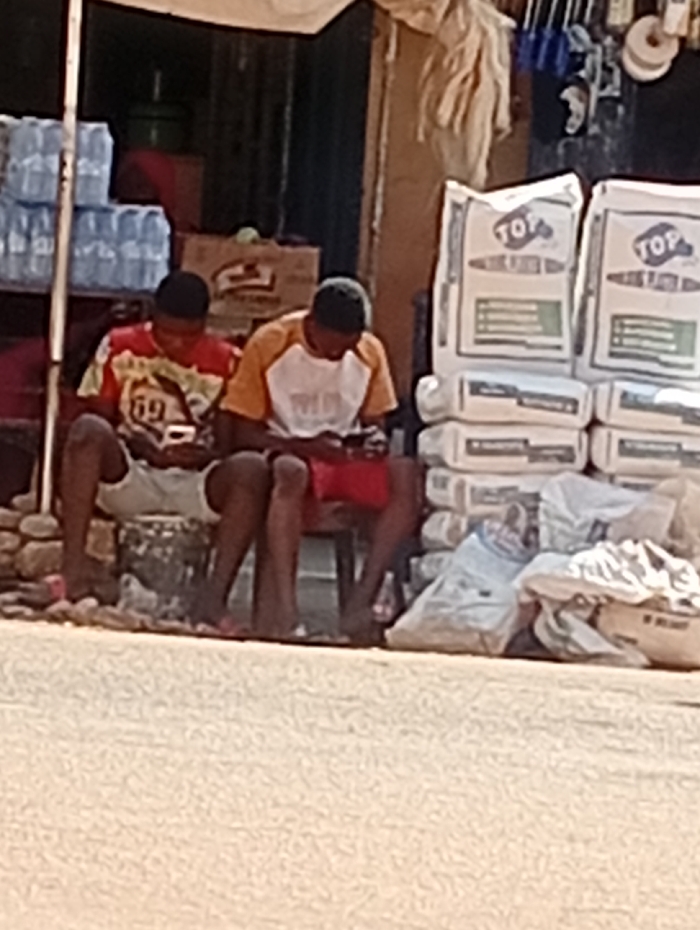 In the city of Maiburiji, Nigeria, two young males are seated outdoors