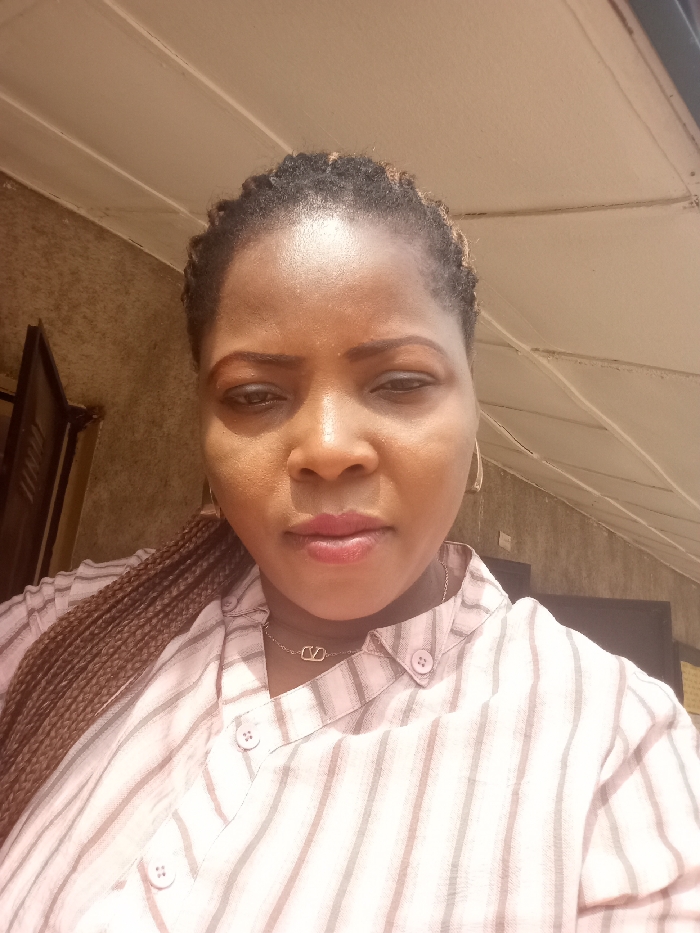 A close-up portrait shows an adult female, appearing to be of African descent, centered in the frame and looking directly at the viewer