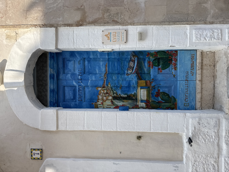 The image displays the entrance to a building located in Polignano a Mare, Italy
