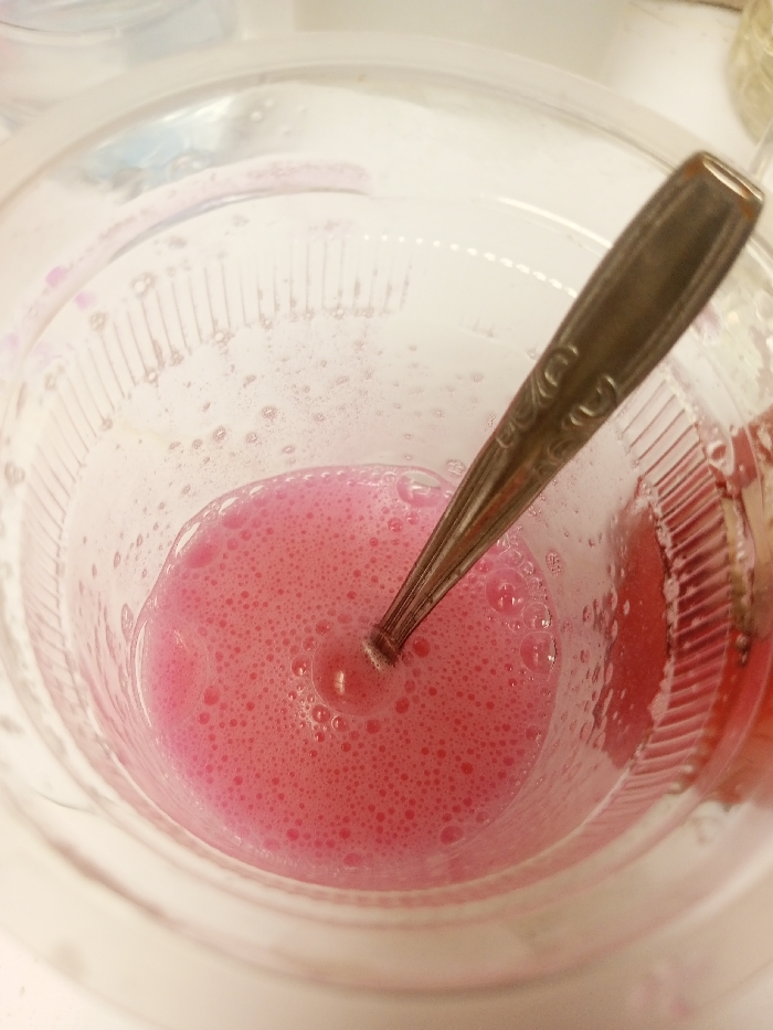 - "A translucent plastic cup contains a frothy, pink liquid" by FM-GgaJg1, licensed under CC BY 4.0