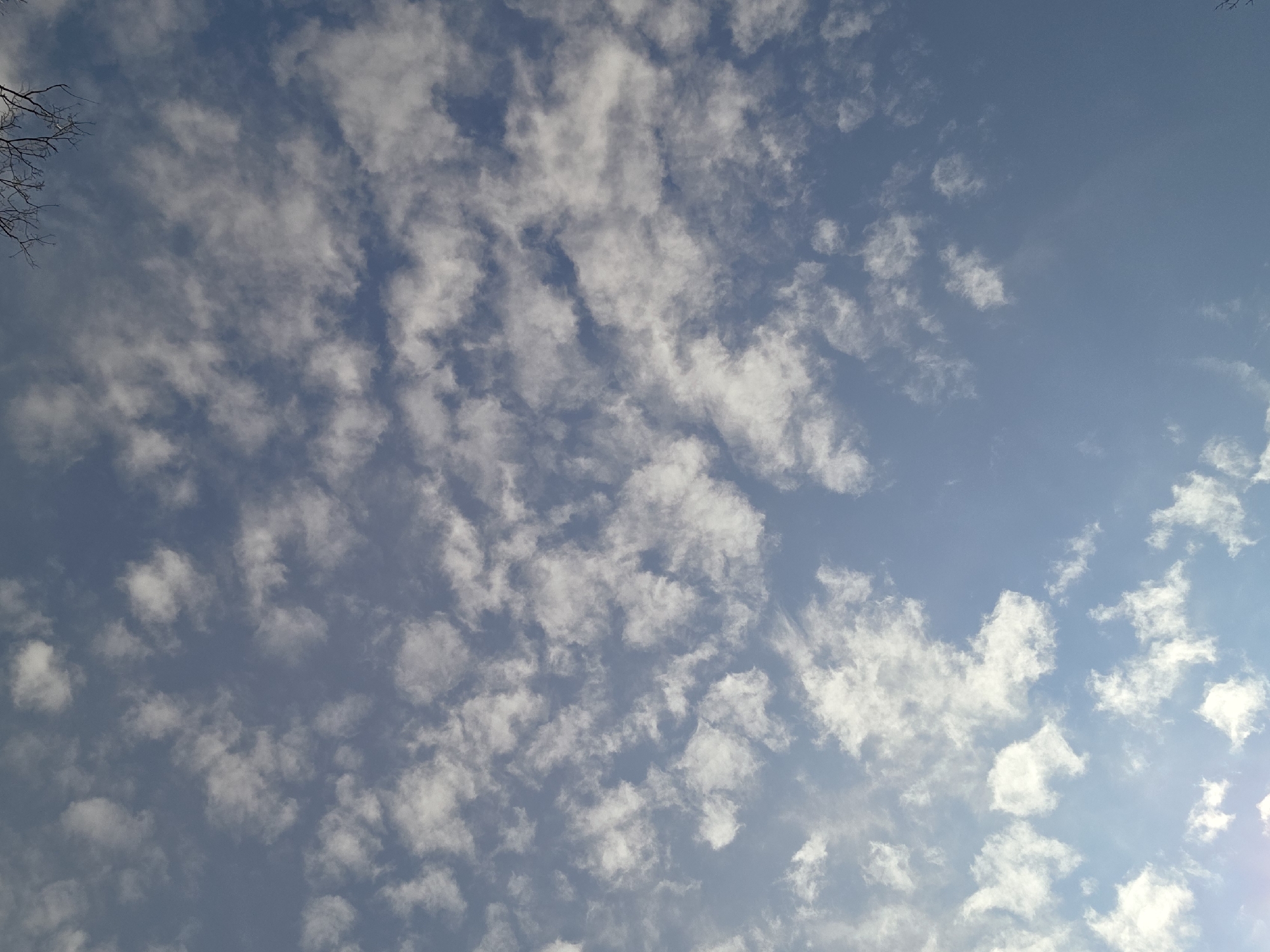 sky with patchy, white clouds scattered across a blue background