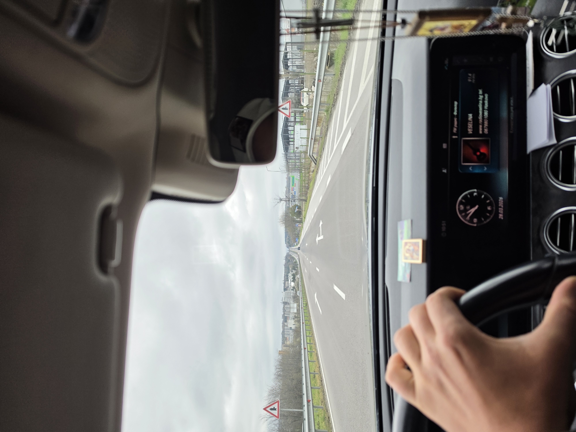 - "The image depicts the interior perspective from the driver's seat of a vehicle in Haskovo, Bulgaria, looking forward through the windshield on a multi-lane asphalt road under an overcast sky" by FM-eLhIG3, licensed under CC BY 4.0
