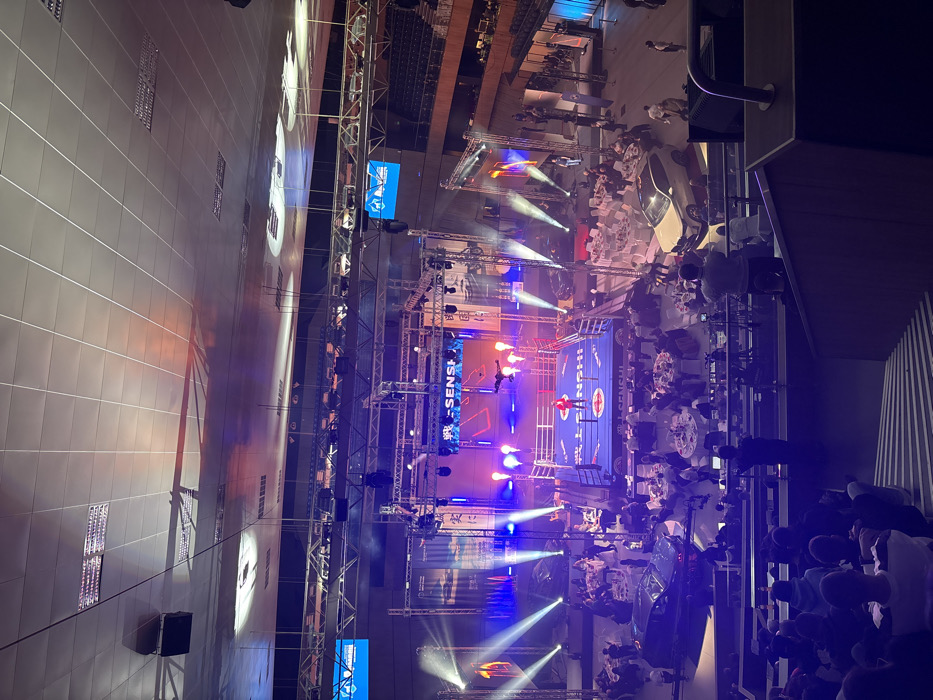 - "This image depicts an indoor combat sports event, identified by "SENSHI" branding, taking place at the Palace of Culture and Sports in Varna, Bulgaria" by FM-imUVs2, licensed under CC BY 4.0