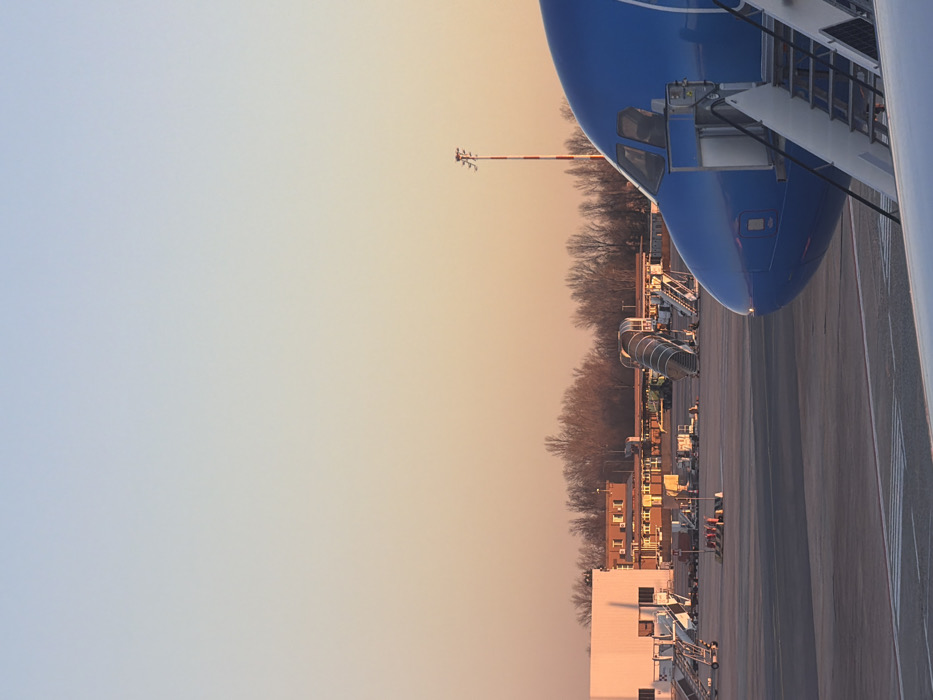 - "A blue and white airplane's nose and boarding stairs are visible in the top right corner" by FM-dfjHz2, licensed under CC BY 4.0