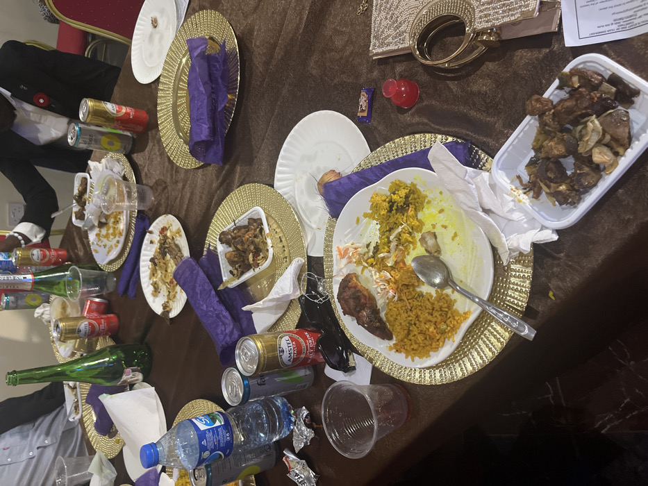 - "A cluttered table is covered in remnants of a meal: partially eaten plates of food, including rice, meat, and coleslaw" by FM-iFS8E3, licensed under CC BY 4.0