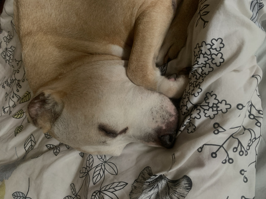 - "A light-colored dog is depicted sleeping on a bed" by FM-BI1Cp2, licensed under CC BY 4.0