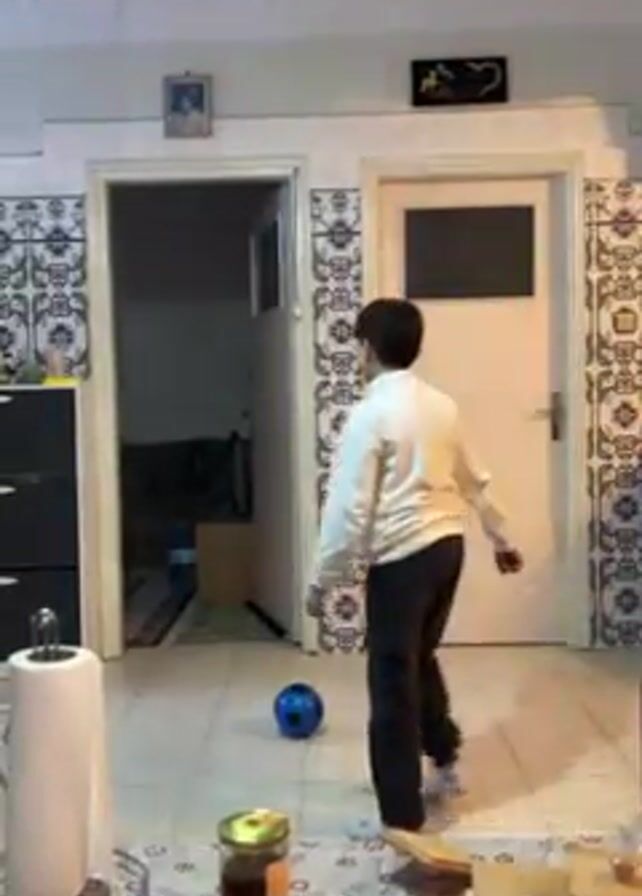 - "A young boy dribbles a small soccer ball in a tiled kitchen" by FM-e0CIi1, licensed under CC BY 4.0