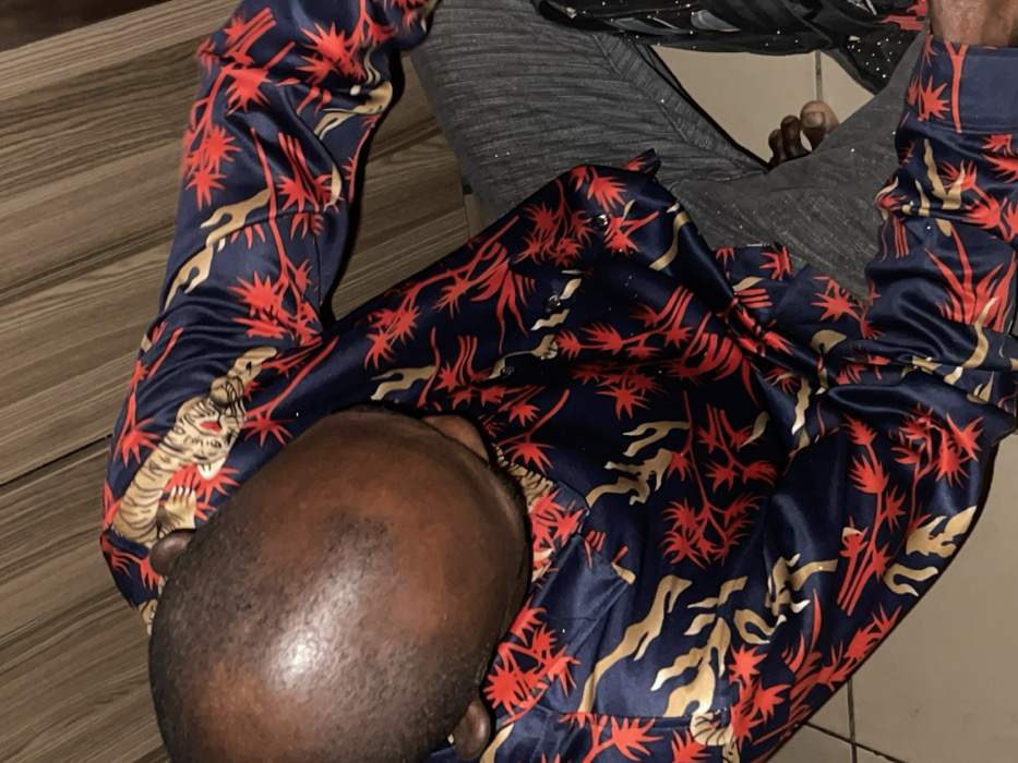 The image, captured from an overhead perspective in Muchiya, Nigeria, depicts an adult male situated indoors
