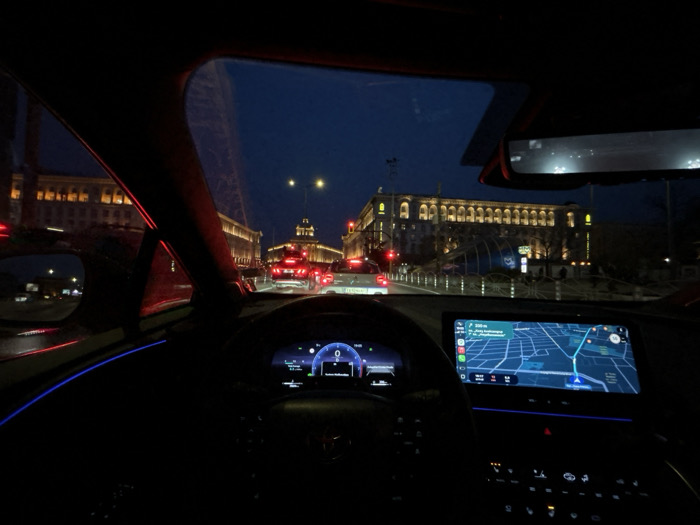- "This image captures a nighttime urban scene from the interior perspective of a modern vehicle, stationary at a traffic light in Sofia, Bulgaria" by FM-UUUOl2, licensed under CC BY 4.0