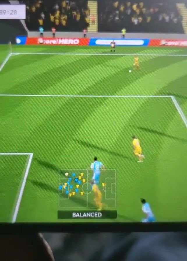 game of soccer being played on a screen