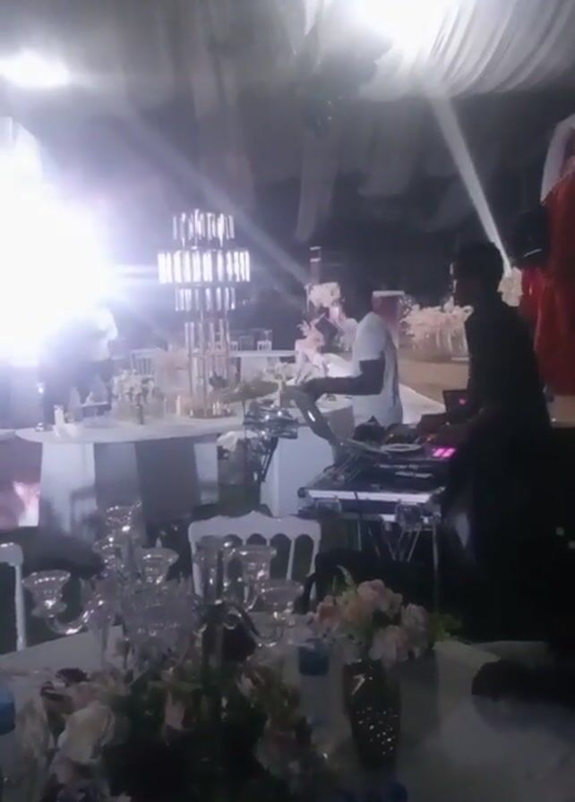 The video captures a festive atmosphere, possibly at a wedding reception, where a DJ is performing live music