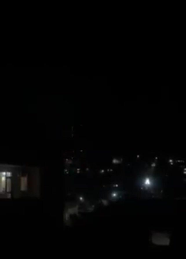 nighttime scene with fireworks going off in the sky. The fireworks explode in various colors, including pink, green, red, and white. Some residential buildings are visible in the foreground and background. The overall environment is dark, illuminated by the fireworks and some streetlights. The camera remains still throughout the video.
