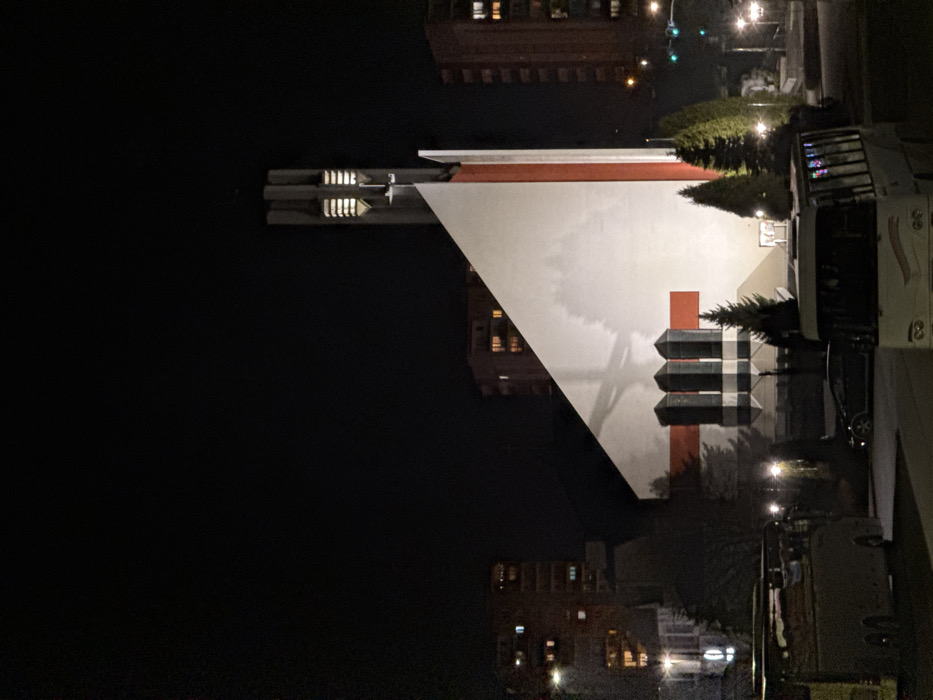 This nighttime image depicts the Church of St