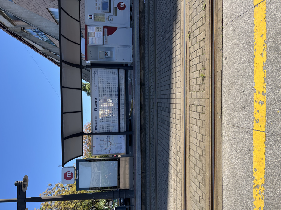 - "The image displays an unoccupied tram stop platform and tracks under a clear blue sky in Burjassot, Spain, specifically at the "Campus" stop, serving Metrovalencia Line 4" by FM-pNWBR2, licensed under CC BY 4.0