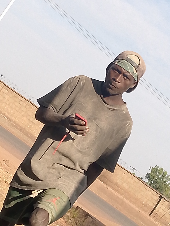 An individual, identified as male, stands outdoors in Jos, Nigeria, under a bright, clear sky