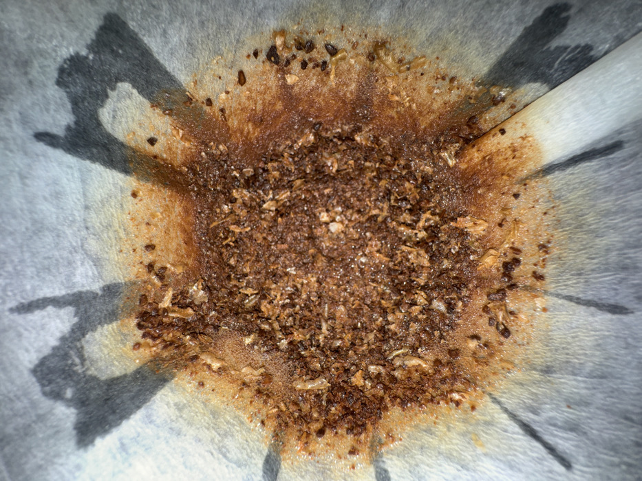 - "A close-up, high-angle view depicts a circular concentration of reddish-brown, granular material centrally located on a light-colored, textured paper surface, resembling a coffee filter" by FM-mGsoQ2, licensed under CC BY 4.0