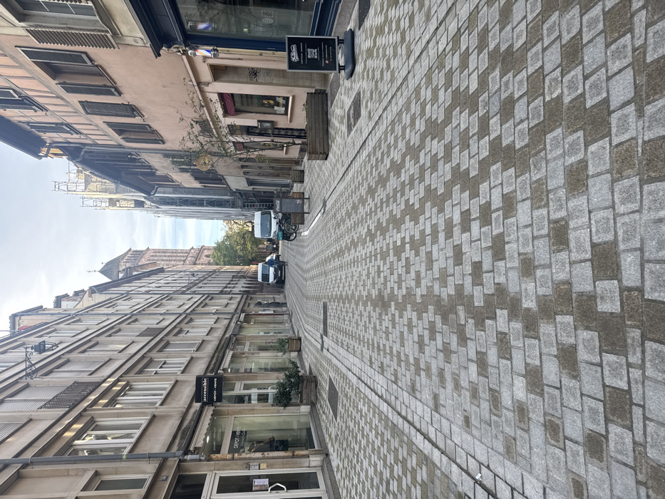 - "The image depicts Rue des Juifs in Strasbourg, France, a pedestrianized cobblestone street viewed looking southeast towards the Temple Neuf, whose prominent brown stone tower is visible in the distance" by FM-pFdZm2, licensed under CC BY 4.0