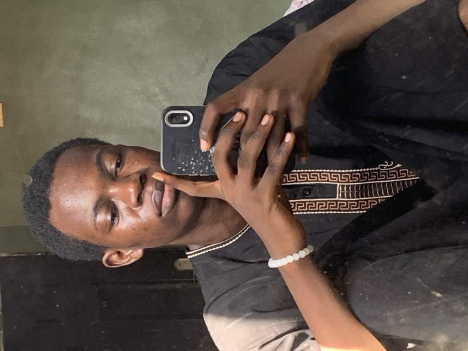 This image, captured in Nnobi, Nigeria, presents a frontal mirror selfie of a male subject indoors